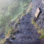 前の台風の影響で、天気予報では小雨が降るかもしれないとは言っていたものの、ハイキングを始めてすぐに土砂降りになるとは思ってもみなかった。雨と風の中、私たちは防水のハイキング・ジャケットを着てハイキング・コースを歩き出した。