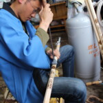 おじいさんは手際よく、熱した鉄のスタンプを木の杖に押し当て、「バリバリ」と音を立てた。杖には美しく細工された印が残され、私たちがこの場所に辿り着いた旅の思い出となった。杖の印を見ていると、私たちの旅の本当の記録があるような気がした。